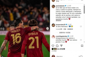 迪巴拉告别帕雷德斯:为你衣锦还乡感到高兴,我们会想念你们